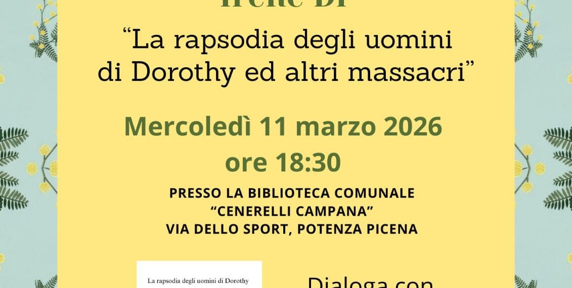 POTENZA PICENA (MC) – Un appuntamento di profonda riflessione civile e sociale quello previsto per la prossima settimana nel cuore di Potenza Picena. Mercoledì 11 marzo 2026, alle ore 18:30, la Biblioteca Comunale “Cenerelli Campana” (via dello Sport) ospiterà la presentazione del libro “La Rapsodia degli uomini di Dorothy ed altri massacri”.