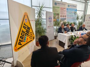 A chiudere la serie di interventi ufficiali, il Prof. Sergio Labate di UNIMC ha offerto una lucida analisi geopolitica, sostenendo che “Oggi ai tavoli della pace a cui assistiamo sono tavoli in cui la mediazione non esiste” e che “il lavoro della pace equivale al lavoro di civilizzazione.”
