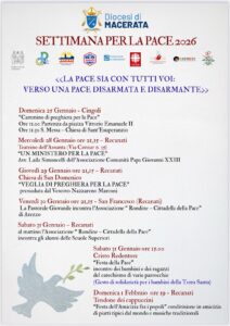 La pace sia con voi: verso una pace “disarmata e disarmante” è il tema del messaggio di Papa Leone XIV per la Giornata Mondiale della Pace 2026 e su questo argomento la Diocesi di Macerata si prepara per vivere la “Settimana della Pace” dal 25 gennaio al 1 febbraio .2026